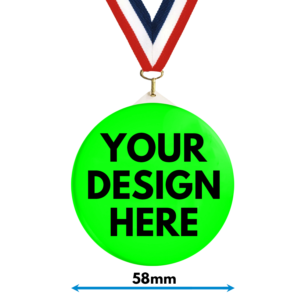 58mm Neon Custom Medals Printed & With Lanyard