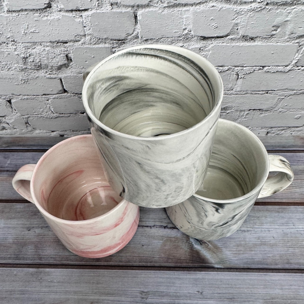 - 14oz Ceramic Mugs with a Marble Finish